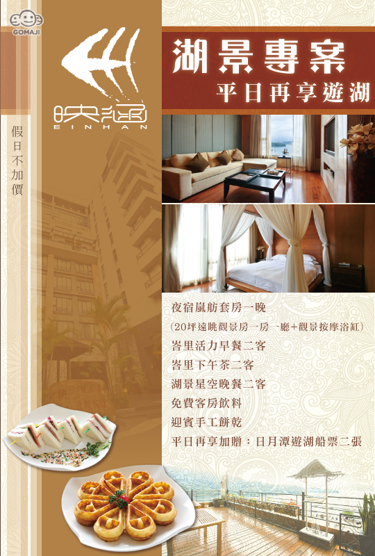日月潭-映涵渡假飯店 - 145736是最近關注的一項還算不錯的商品,一樣是在Gomaji上發現的。我真的非常喜歡逛Gomaji,尤其很多東西價格都很不錯,也有不少優惠券可以用,下面是賣場提供的商品簡介: